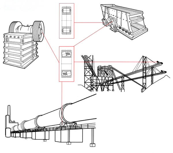 礦山機(jī)械惡劣的工作環(huán)境,要求軸承在高負(fù)載、多粉塵的條件下連續(xù)工作。尤其是振動(dòng)篩和破碎機(jī),其振動(dòng)對(duì)軸承極具破壞性。針對(duì)礦山機(jī)械行業(yè)的特殊應(yīng)用工況,研發(fā)了礦機(jī)專用軸承,幫助礦山機(jī)械設(shè)備提高連續(xù)運(yùn)行的可靠性,減少用戶維護(hù)和修理的成本。